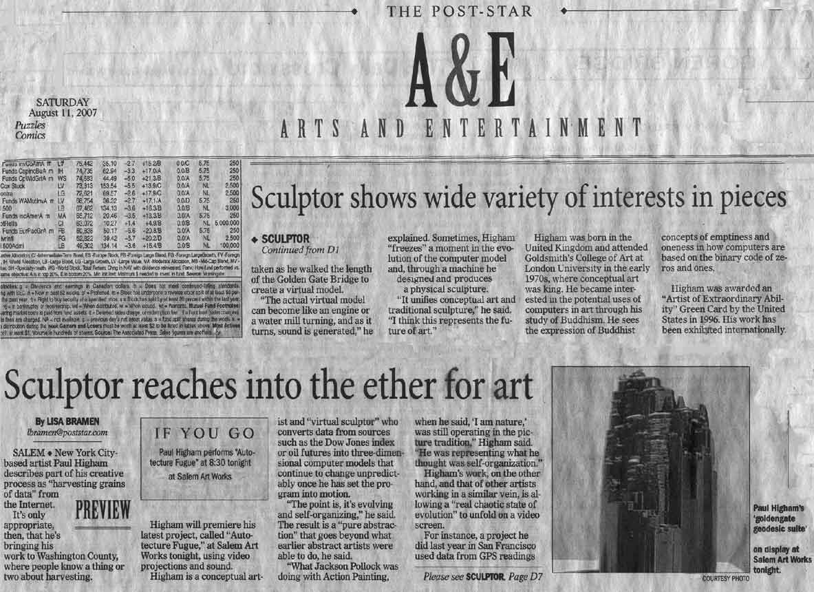Meanwhile, Higham is consulting with a Japanese company about building a virtual reality flight simulator. There's also talk of doing a sound show at the Walker Art Center with